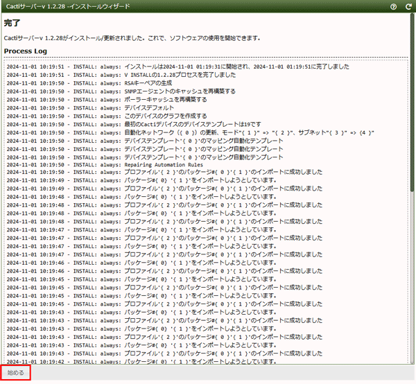 ※SSL/TLS設定を実施した場合は「https://[ドメイン名]/cacti」にアクセスしてください。
