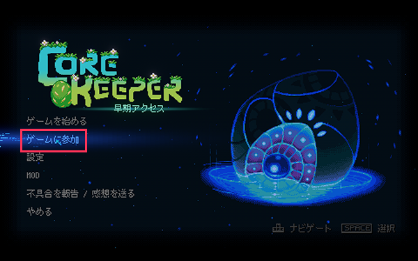 Core Keeperを起動し、「ゲームに参加」をクリックしてください。