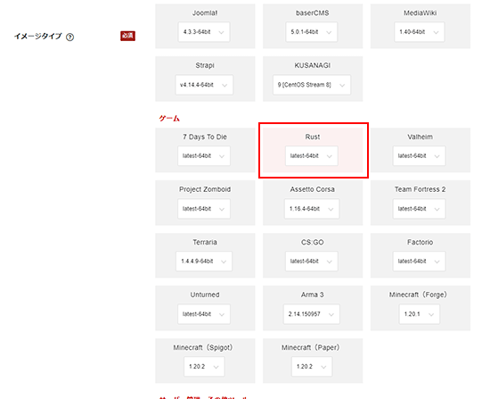 「イメージタイプ」における「アプリケーション」タブより「Rust」をクリックしてください。