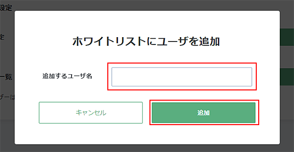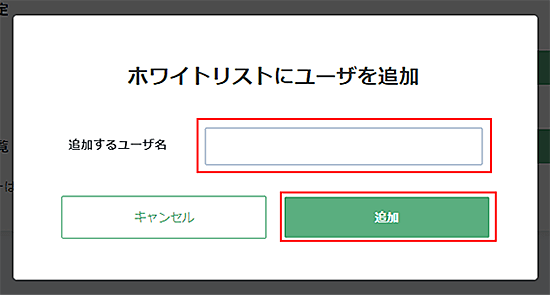 ホワイトリストに追加したいユーザー名を入力して「追加」ボタンをクリックします。