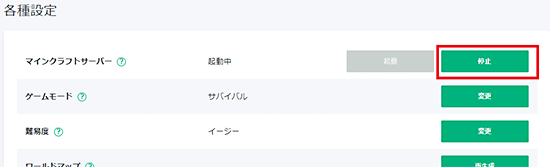 マインクラフトマネージャーを開き、マインクラフトサーバーを停止してください。